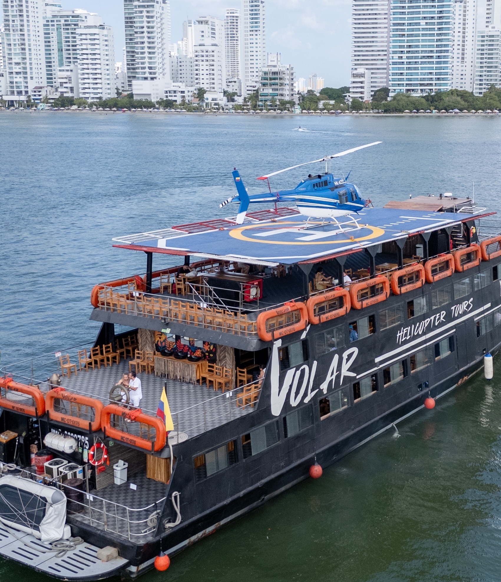 Disfruta un recorrido exclusivo por la bahía a bordo de una embarcación moderna, con cóctel de bienvenida, show en vivo y almuerzo caribeño. Como momento estelar, vivirás un sobrevuelo en helicóptero para admirar Cartagena desde una perspectiva única e inolvidable. Perfecto para parejas, celebraciones y viajeros que buscan una experiencia diferente en el Caribe.